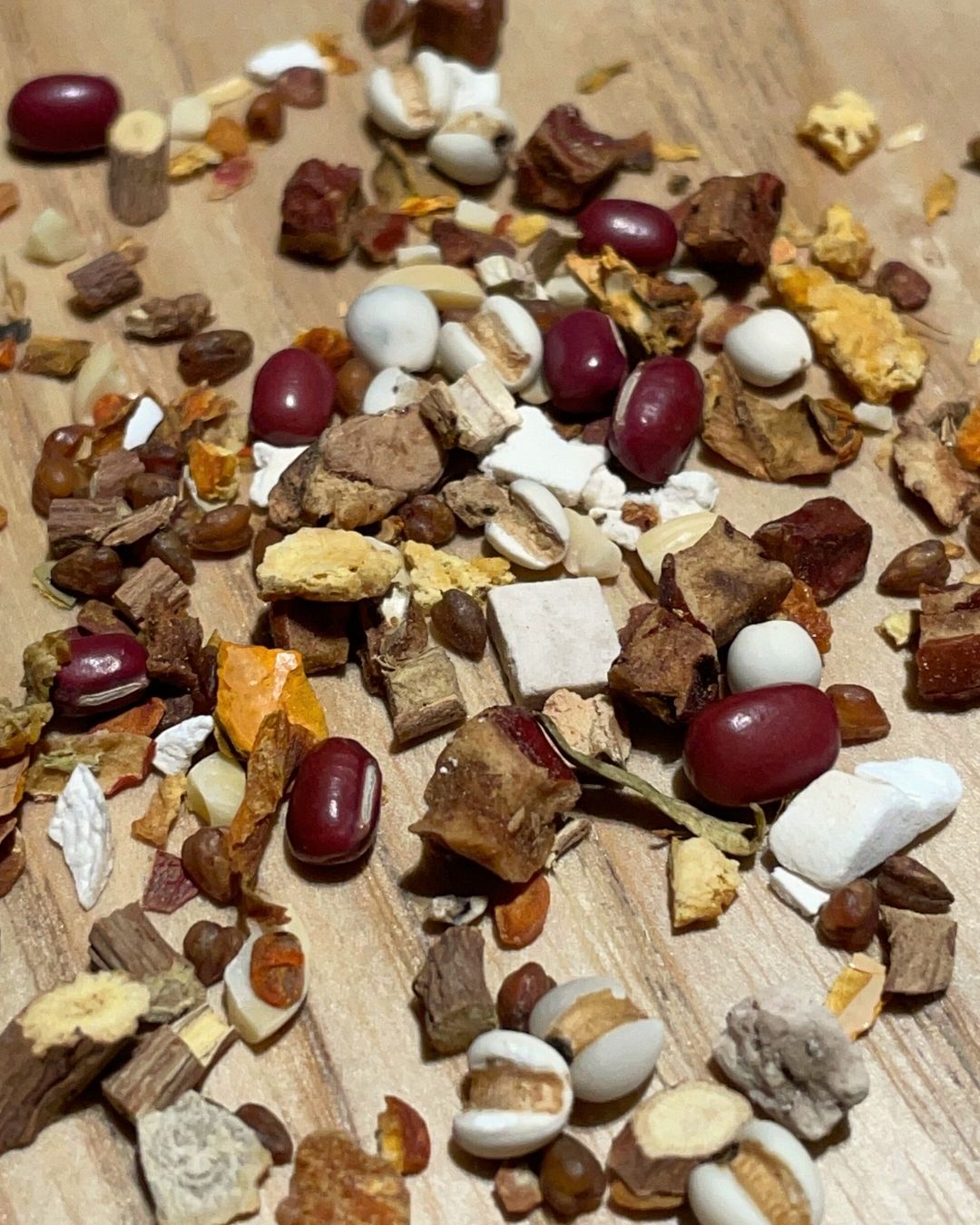 原材料:赤小豆、白扁豆、大棗、山楂、甘草、黃苦蕎、薏米、梔子、陳皮、茯苓、山藥、