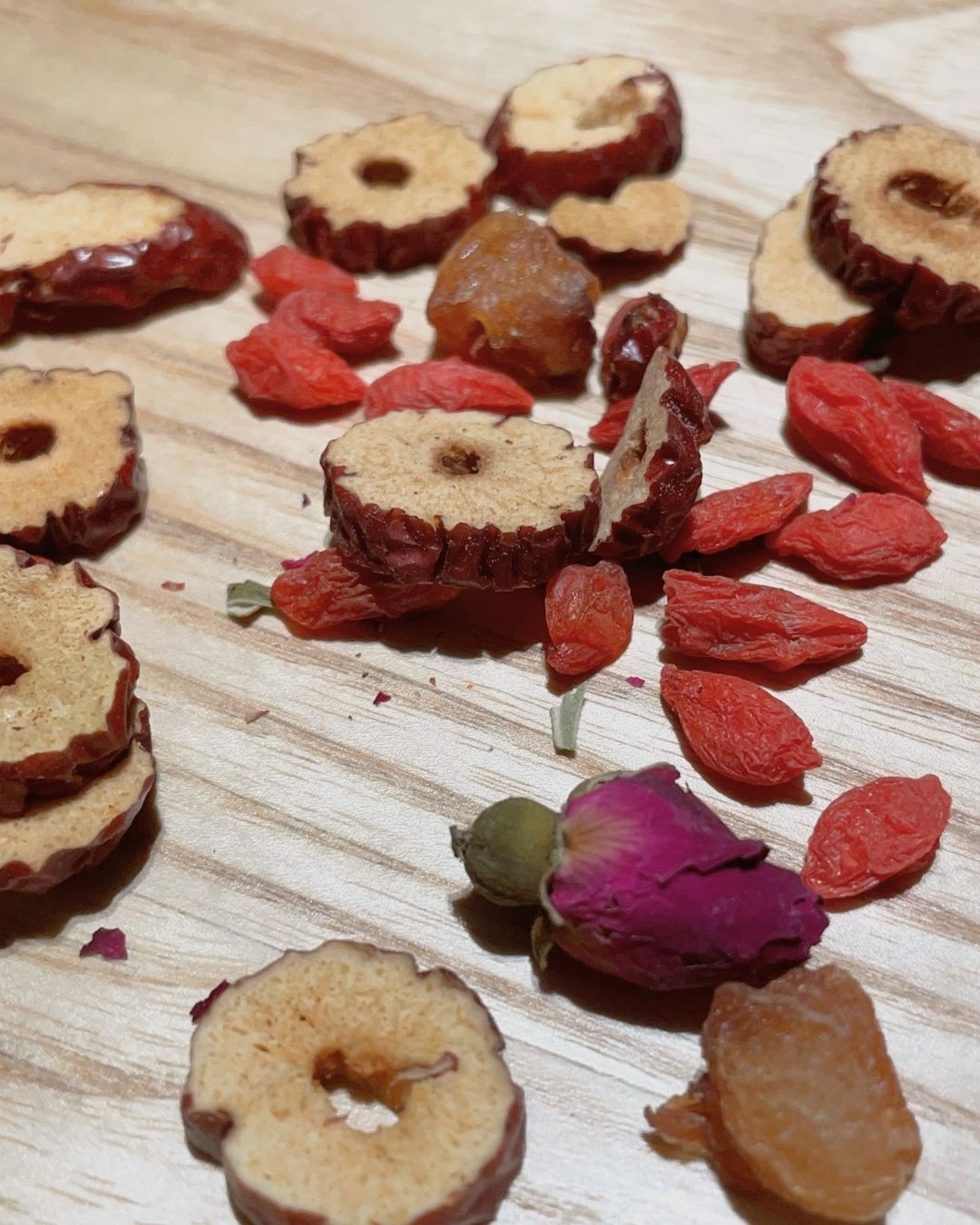 原材料:玫瑰花、紅棗、桂圓、大棗